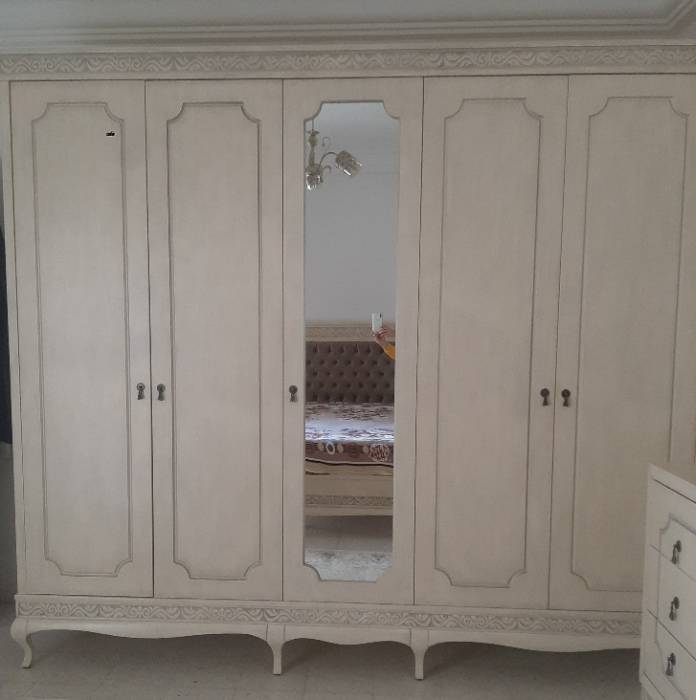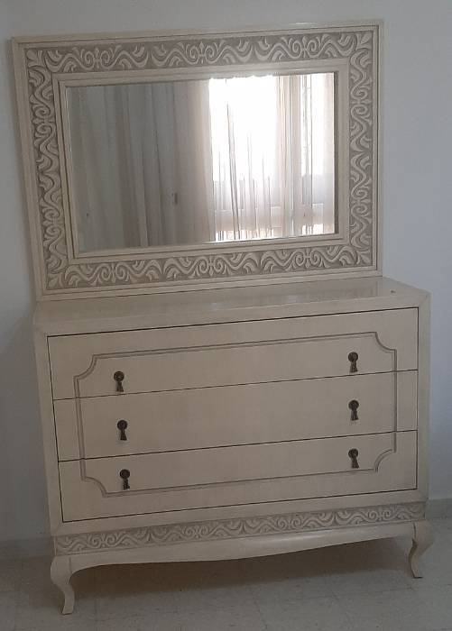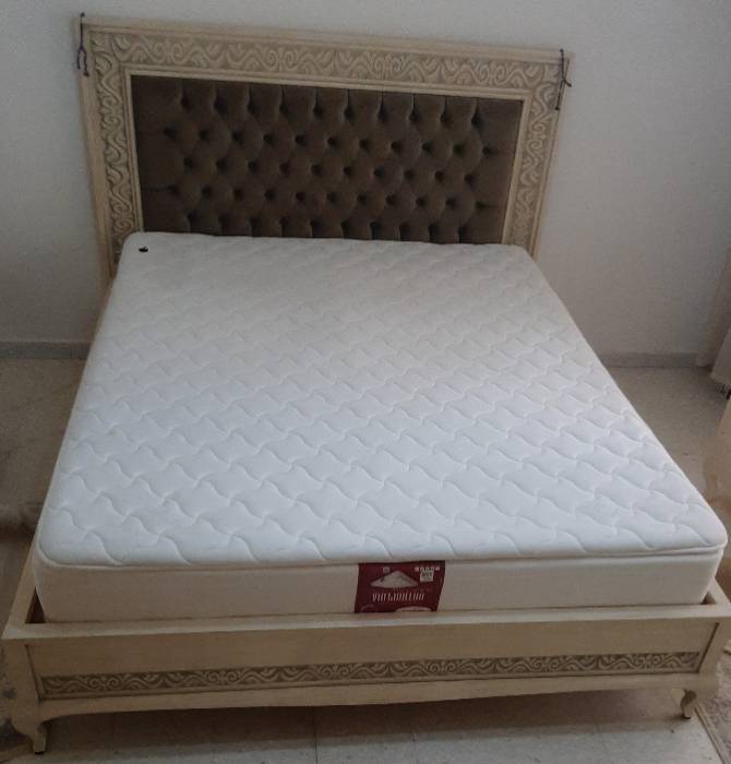 Chambre à coucher: lit double +plomberie(6 portes)+coiffeuse +2 tables de nuit